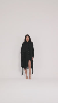 S168 Black Shirt with panelled natural overlays of silk and georgette, raw edge hems