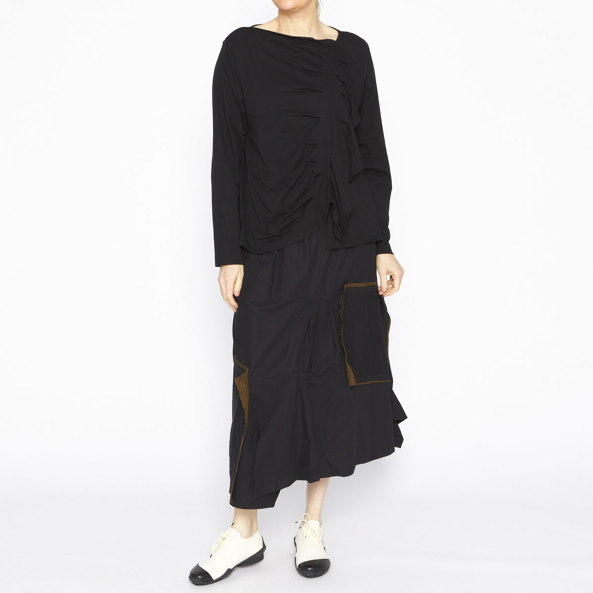 Larkin Black Multi Panelled Skirt with Khaki Trims