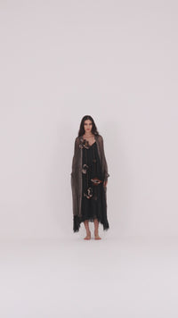 S155 Bengal Brown Viscose Georgette Button Thru Long Sleeve Shirt Dress